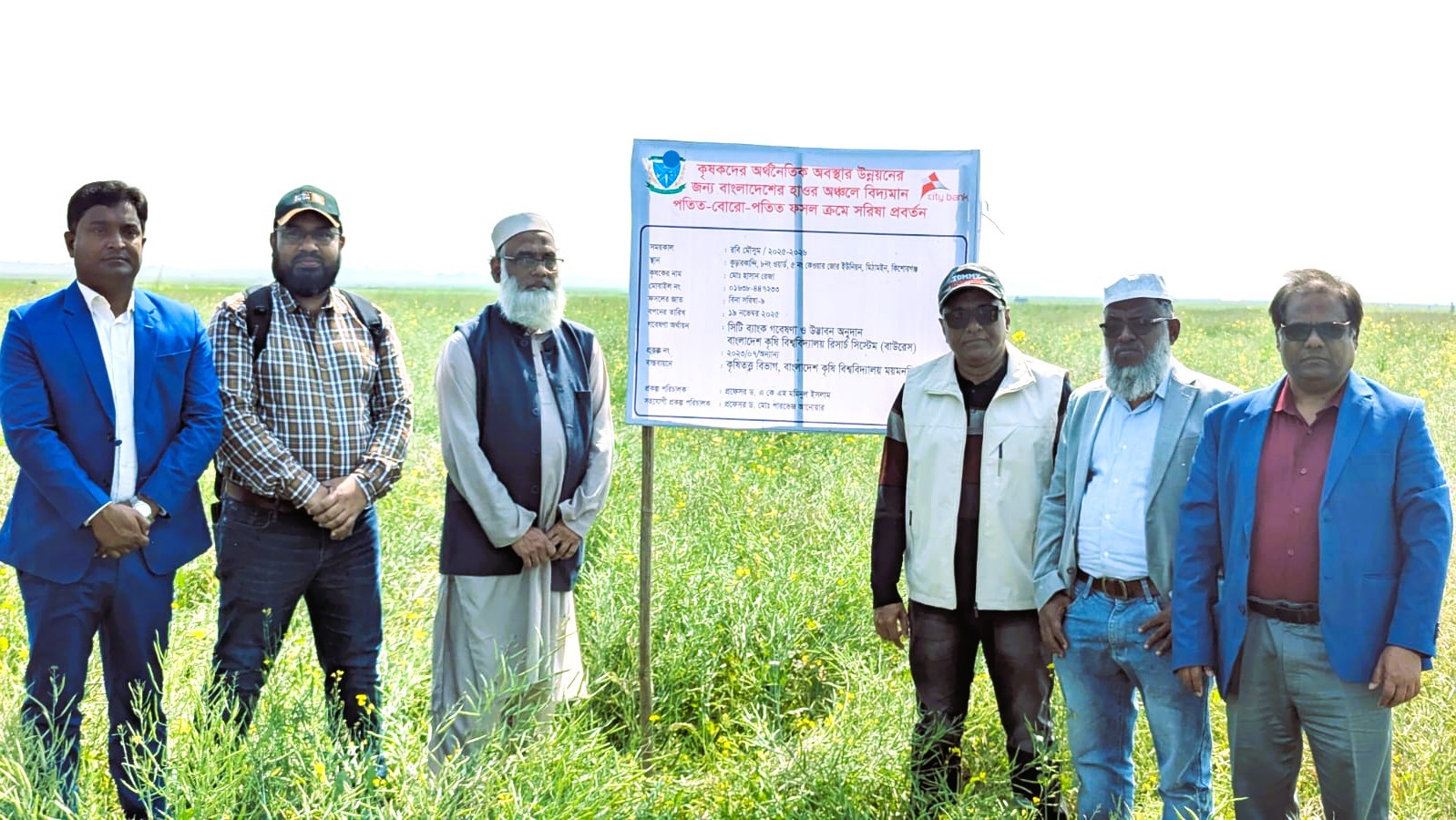 জানা যায়, ‘কৃষকদের অর্থনৈতিক অবস্থার উন্নয়নের জন্য বাংলাদেশের হাওর অঞ্চলে বিদ্যমান পতিত-বোরো-পতিত ফসল ক্রমে সরিষা প্রবর্তন ’ প্রকল্পটি ২০২৩ সাল হতে কিশোরগঞ্জের মিঠামইন উপজেলার হাওর অঞ্চলে পরিচালিত হচ্ছে। বাংলাদেশ কৃষি বিশ্ববিদ্যালয় রিসার্চ সিস্টেমের (বাউরেস) তত্ত্বাবধানে এবং সিটি ব্যাংকের অর্থায়নে প্রকল্পটি বাস্তবায়িত হচ্ছে।