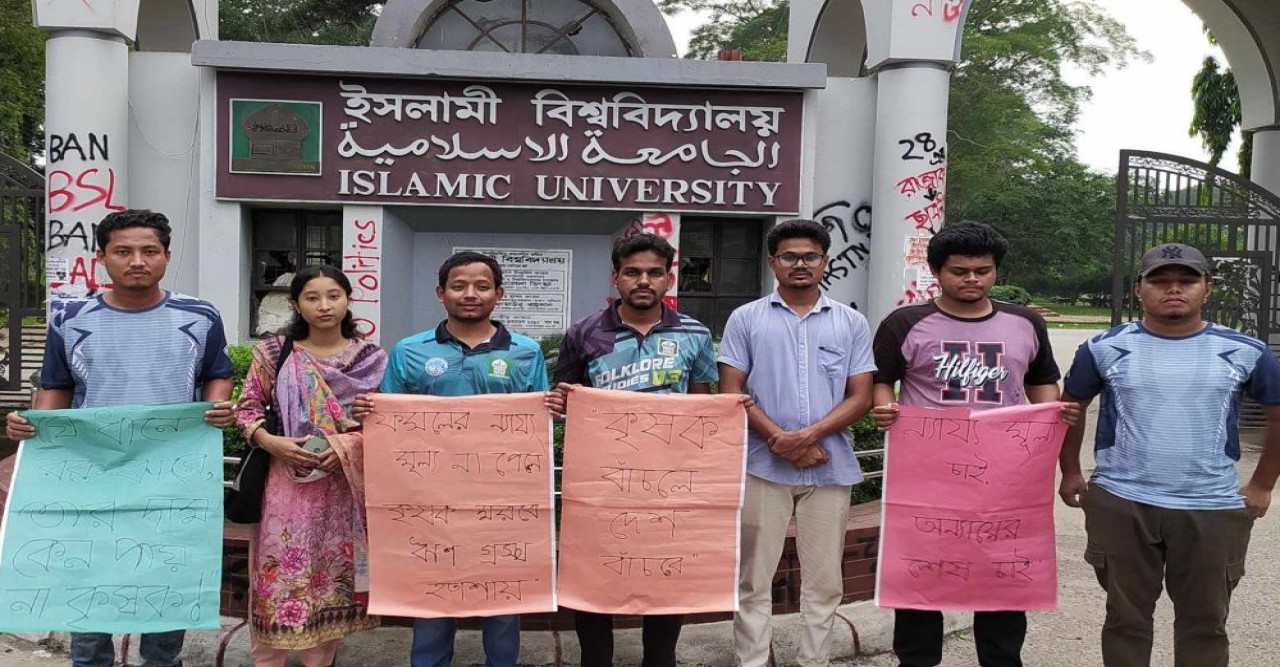 উত্তরবঙ্গের কৃষকদের উৎপাদিত ফসলের ন্যায্য মূল্য নিশ্চিতের দাবিতে টানা সাতদিনের মত অবস্থান কর্মসূচি পালন করেছেন ইসলামী বিশ্ববিদ্যালয়ের (ইবি) ল’ অ্যান্ড ল্যান্ড ম্যানেজমেন্ট বিভাগের ২০২৩-২৪ বর্ষের শিক্ষার্থী খোকন চন্দ্র বর্মন।জানা যায়, খোকন বর্মন গত রবিবার (২৫ মে) থেকে শনিবার (৩১ মে) পর্যন্ত প্রথমে বিশ্ববদ্যালয়ের স্মৃতিসৌধ প্রাঙ্গণে এ কর্মসূচি শুরু করে পরে তা প্রধান ফটকে এক ঘন্টা করে এ অবস্থান কর্মসূচি পালন করেন। দাবি আদায় না হলে বিশ্ববিদ্যালয় খোলার পর পুনরায় অবস্থান কর্মসূচি চালিয়ে যাওয়ার ঘোষণা দেন তিনি।এ সময় খোকন বর্মনের এ দাবির সাথে বৈষম্যবিরোধী ছাত্র আন্দোলনের সমন্বয়ক এস এম সুইট, সহ-সমন্বয়ক গোলাম রব্বানীসহ বিভাগের সহপাঠী এবং সিনিয়ররা সংহতি জানিয়ে অবস্থান কর্মসূচি পালন করেন।